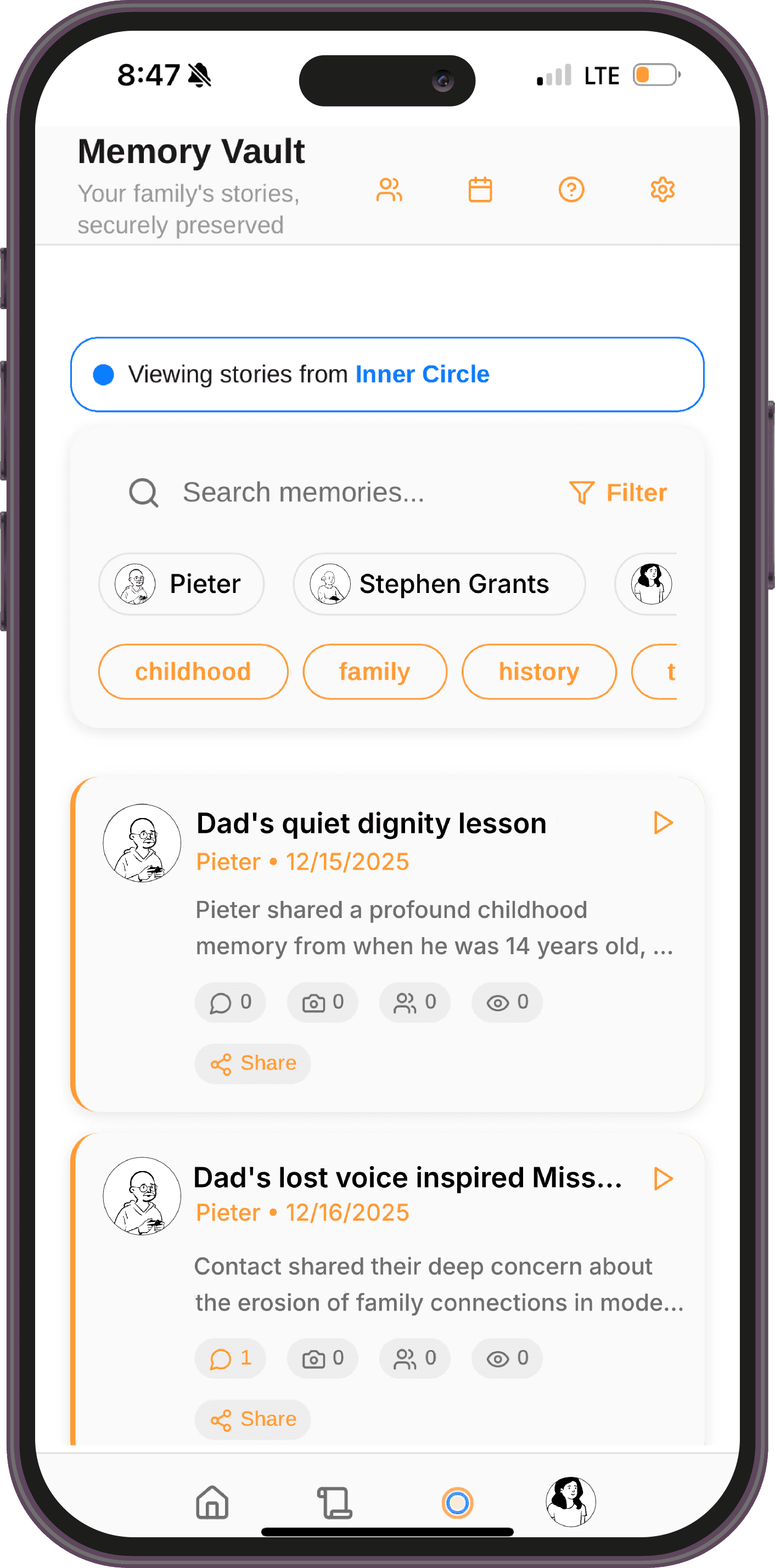 Every story matters and every voice deserves to be heard. Begin with the people you love and watch your family's history grow naturally over time.
